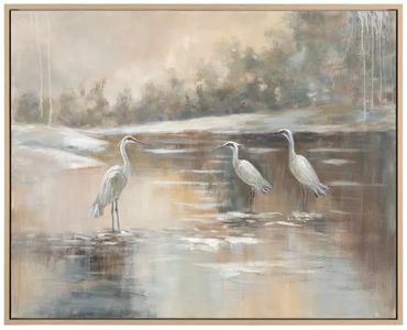 Let your walls tell a story of serenity, connection, and natural grace with the Egret Reflections wall art by Crestview Collection. The piece showcases a beautifully painted waterscape scene, where a graceful flock of egrets stands quietly in the shallows of a calm riverbed, their reflections gently mirrored in the water’s glassy surface.Read More