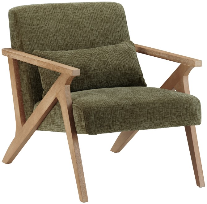 Update your lounge space with the irresistible texture of bouclé and the timeless lines of mid-century design. This accent chair pairs a sculptural solid-oak frame with deep olive, loop-pile cushions that invite you to sink in and stay a while. A matching lumbar pillow lets you personalize support.Read More