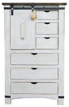 Complete your bedroom with this barn door chest from Million Dollar Rustic. Shown in brown and white finish, this chest has 6 drawers and a door that provides ample amount of room for your storage needs. Update your space with style and functionality by incorporating this piece into your bedroom.Read More