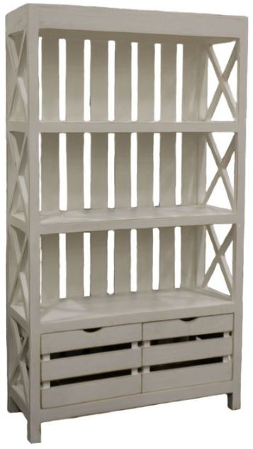 This bookcase with a frosted white finish has two drawers and three shelves giving you ample space for your storage needs. Incorporate this piece into your living room decor to give your home an eye-catching update.Read More