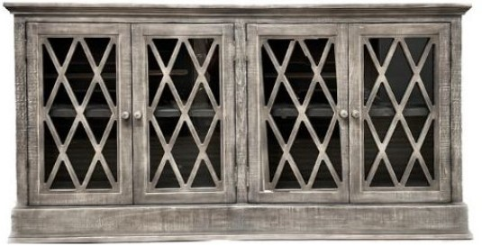 This Courtland console is a functional and stylish piece that adds warmth and character to any room. The four doors and granite finish with diamond designs add a touch of elegance and sophistication to this piece. With ample storage space behind the doors, this console is perfect for storing everyday items.Read More