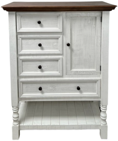 Bring charm and ample storage to your space with the Mountain Lake Chest. This wood piece features a beautiful white finish, one door, four spacious drawers, and a convenient open shelf at the bottom—ideal for storing and displaying essentials.Read More