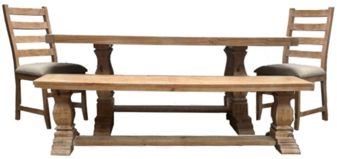 Includes table, two chairs and a bench